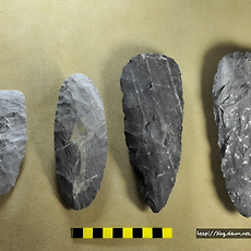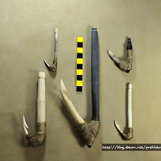 실험고고학 자료실260 아틀라틀-클로비스의 제작 - 북아메리카 원주민들의 특징적인 석창문화 - 폴섬문화와 더불어 석창을 제작한 후 fluting technique 통해 살대에 끼울수 있는 홈을 조성하는 것이 가장 큰 특징이라 할 수 있다. 2011. 9. 9. 토양쐐기의 평면형태 - 쐐기의 평면형태는 오각형 내지 사각형 등 다양한 형태를 가짐 - 추위와 건열, 지하수 등의 요인에 의한 퇴적구조라는 학계의 의견 - 구석기현장에서 쉽게 볼수 있는 토양구조 2011. 9. 9. 충적지에서의 사면퇴적 양상 - 충적지층에서의 사면퇴적과정의 양상 2011. 9. 9. 영암 삼호지역의 고토양층 - 플라이스토세 고토양층의 퇴적구조 - 구석기학에서 필수적인 퇴적구조 자료 2011. 9. 9. 빙하기 구석기인이미지 2011. 9. 9. 일본 홋카이도 시라타키유적 출토 양면석기 - 홋카이도 시라타키(Shirataki)유적 출토 대형양면석기 - 길이 : 약30cm - 후기 이와주쿠시기 - B.P 14,000 2011. 9. 9. 석착, 자귀류의 복원 2011. 9. 8. 격지의 배면 관찰 - 격지의 배면에서 관찰될 수 있는 타격혹, 타격흔과 타격점, 파상흔 2011. 9. 8. 양극타격기법(bipolar technique)의 이해 - 구석기시대 산성암 또는 규암을 석재로 한 석기제작과정에서 확인되는 제작기법 - 주로 몸돌에서 격지를 떼어내기 위한 기술적인 시도가 두드러지게 나타남 - 석기제작과정이나 기법들을 정확하게 이해해야만 구분할 수 있으므로 주의가 필요함 -상단에서 내려치는 힘과 모루에서 받.. 2011. 9. 7. 2011.09.05 토기소성후 완성품 - 토기소성이 완료된 14점의 토기 -가장 큰 문제점은 태토선택을 잘못하여 환원시 토기빗깔이 생각했던 것보다 잘 나오지 못하였다. 2011. 9. 5. 실험고고학-민족지자료(이누이트족의 천공작업) - 이누잇족이 뼈에 천공하는 전경-자료사진 2011. 9. 5. 러시아 아무르지역 신석기시대 토기 2011. 9. 5. 2011.09.05 토기소성실험 늦은 오후 바람이 조금 불긴 했지만 적당한 산소주입이 가능할 것으로 생각하고 선사체험장에서 소성실험 진행 작년 겨울에 제작된 토기를 오랜시간 건조후 일요일 오후 드디어 구워보기로 결심 구울 토기는 크기가 작은 토기들만 선별하여 총 14점만 우선 구워보기로 함. 혼자서 작업하.. 2011. 9. 5. 타제석촉제작 - 격지를 활용한 타제석촉 제작과정 - 타제석촉 제작에 적합한 격지선택 석촉제작과정의 중간 단계-성형다듬기 및 잔손질(눌러떼기) 눌러떼기작업 후 완성단계 2011. 9. 4. 후기구석기시대 흑요석제 세형몸돌 제작-교육용 - 후기구석기시대 흑요석 세형몸돌 복원. 선사체험의 석기교육에서 가장 기초적인 교육과정 중의 하나로 필수적인 코스로 필요 - 아랫능선조정과 타격면 조성, 적절한 작업면 선정, 눌러떼기 각도등이 필수적임 - 일반적인 돌날제작(고례리유적)은 눌러떼기 작업보다 뿔망치로 직접떼기.. 2011. 9. 1. 끝날긁개 제작과 새기개 2011. 8. 31. 실험고고학-신석기시대 결합식 낚시바늘 복원 2011. 8. 25. 타제석촉 및 석창 실험제작 - 기본형 모델 2011. 8. 23. 마제석검 복원 - 송국리유적 출토마제석검 복원 - 점판암으로 제작(약35cm) 2011. 8. 23. 타제화살촉 및 클로비스형 석창 복원 2011. 8. 23. 실험고고학-뚜르개복원 - 뚜르개의 실험고고학적 복원 - 플린트석재와 시뉴(소힘줄), 천연타르(송진과 카본) 2011. 8. 23. 타제석부제작 - 신석기시대 타제석부 제작 - 석부날을 세우기 이전 상태 2011. 8. 23. 실험고고학-천연접착제(타르제작) - 송진과 카본(숯)을 이용한 천연접착제 제작 - 화살촉 및 창촉제작에 최적인 접착제 - 카본을 많이 혼합하면 접착력이 떨어지며 쉽게 깨질수 있다. - 선사체험교구용으로 활용가능 2011. 8. 19. 타제석촉 제작- 플린트 - 노두에서 채집한 실리카 결정질의 석재를 손질해 본 타제석촉 2011. 8. 15. 정체불명의 후기구석기시대 골각기 유럽지역에서 출토되는 바톤(baton)이라 불리우는 골각기 사슴뿔이나 뼈에 구멍을 뚤거나 문양, 동물형상을 새겨 놓았다. 모형품 제작및 동물형상 조각 체험방안 -프랑스 구석기문화 기준 막달레니안기의 골각기 2011. 8. 14. 돌날보관틀-메소포타미아 남부 메소포타미아 남부 -Late Uruk 유적 12층에서 발견된 돌날보관 틀(점토로 제작하여 부러지거나 잃어버리기 쉬운 돌날을 한 곳에 끼워넣어 보관할 수 고안) copyright- David Thomas 2011. 7. 30. 석기제작도구-선사체험교육자료용 실제적으로 석기를 제작하기위해 활용하고 있는 제작용 도구자료 종류별로 용도가 다른 뿔망치와 망치돌류 쐐기용 뿔과 누름도구들 돌날을 떼어내기 위한 고정목 등이 준비되어야 한다. 2011. 7. 21. 석기제작과정의 망치돌 파손 석기제작과정 중에 망치돌의 파손흔적과 형태 자갈돌 전체적으로 패각상의 흔적들이 남아있다. -망치돌 석재는 제이드계열 2011. 6. 28. 눌러떼기로 돌칼을 제작한 사례 - 일정한 간격과 각도, 힘의 균형이 잘 조합되어 어느 한 곳 트러블이 없이 말끔히 제작된 돌칼 copyright-lithiccastinglab 2011. 6. 24. 돌도끼 손잡이 돌도끼(석부)는 그것 자체가 도구로써 기능을 나타낼수가 없다. 즉 손잡이와 결합하여 회전축을 중심으로 내려치는 방향과 도끼날의 힘의 작용해야 도구로써의 기능을 살릴수 있다. 손잡이는 대게 활엽수인 참나무, 떡갈나무 등이 가장 무난하다. 돌도
