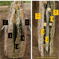 실험고고학 자료실260 청동기시대 비파형석검 실험제작(선사체험용 마제석기 교구) - 청동기시대 이른 시기의 비파형동검을 본따 제작한 비파형 석검 - 실제유물을 다루기 어렵기 때문에 실제모형을 복원- 돌대부분(등대)이 너무 두터워 수정 - 재질은 점판암 2010. 9. 24. 돌날의 박리과정 뿔망치를 사용하여 돌날을 떼어내는 과정에서 생긴 균열 파괴물리학에서 엄밀히 따지면 돌을 깨지는 것이 아니라 찢어지는 표현이 타당함. 모든 물체는 어느정도의 탄성이 존재하며 암석 역시 수분함량이 높고 탄성이 있어 석기제작과정에서 격지나 돌날이 찟어지면서 떨어지는 것이 올바른 표현이라고 할 수 있음 실제 돌날을 떼어내고 손으로 구부리면 어느정도 휘면서 다시 원형을 되찾게 되며 필요이상의 힘이 가하면 부러진다. 아래의 자료사진은 돌날이 완전히 박리되지 않고 균열만 생겨 몸돌에 붙어있는 상황. 충분한 힘이 전달되지 못하여 몸돌에서 분리되지 못하였으며 조금의 힘이 더 가하졌으면 스텝(step flaking) 또는 힌징(hinging)이 되었을 가능성이 높음 2010. 9. 23. 종장형격지 - 돌날 또는 종장형 격지의 전후면 2010. 9. 8. 청동기시대 석재가공의 놀라운 방법-판석 생산과 가공방법 - 청동기시대 석관묘제작을 위한 판석자재 획득방법 - 이외에도 다양한 방법으로 석재를 분할시키는 방법들이 있다. 2010. 9. 5. 청동기시대 놀라운 석재가공기술-판석생산을 위한 청동기시대 판석생산기법 유적 자료를 통해 본 판석생산기법 -발굴된 석관묘 벽석, 바닥석 등 판석부자재를 한매의 두터운 판석으로 복원한 결과 청동기시대 석재활용 및 제작기술을 엿볼 수 있다. 나무쐐기- 판석을 분리하기 위한 쐐기홈의 위치를 복원한 사진 2010. 9. 5. 석기제작도구 - 석기제작도구의 대표적인 소재 - 석영제 강자갈돌(용도별로 다양한 형태), 나무(무겁고 심이 단단한 나무), 뿔 등 2010. 9. 4. 돌날떼기기법 - 돌날몸돌의 조정과 돌날을 떼기위한 쐐기조정각도 2010. 8. 14. 실험고고학-석기제작(뿔망치와 구리막대의 타격면, 격지비교) - 왼쪽은 흑요석을 절단하여 슬랩으로 만든 것 - 오른쪽은 마호가니 흑요석을 절단하여 슬랩화 시킨 것 - 측면부분을 직접타격해서 격지와 타격굽, 타격점 비교자료 2010. 7. 30. 이중타격혹-격지관찰 - 첫번째 타격에서 박리가 되지 않는 격지가 바로 옆 타격면에서 새롭게 타격했을 때의 격지의 배면상태 - 첫번째 타격에서 이미 강한 타격이 진행되어 박리되지 않았지만 이미 내부에는 타격혹이 생성되어 있음을 확인 - 격지 배면에 2개의 타격혹과 타격점, 타격흔이 존재하는 경우 2010. 7. 27. 석기가공의 물리적 원리 - 절대불변의 물리적 법칙 copyright : Andrefsky 1998; Cotterell and Kamminga 1987 2010. 6. 29. 청동기시대 적색마연토기(가지문토기) 관찰 <!-- div { color: #ffbb00; } li { color: #ffbb00; } a, a:link, a:hover, a:visited { color: #ffbb00; } td { color: #ffbb00; } .txc-search-border { border-color: #ffbb00; } .me2day_daily_digest p, .me2day_daily_digest a, .me2day_daily_digest a:hover { font: 11px '돋움', dotum, sans-serif; } //--> 적색마연호 제작을 위한 유물관찰 1. 적색마연기법 2, 가.. 2010. 5. 27. 신석기시대 빗살무늬 토기관찰 출토지 : 비공개 신석기시대 빗살무늬토기에 대한 세심한 관찰과 문양의 시문기법등을 파악 2010. 5. 19. 선사체험장 토기제작(2010.04.11) 2010. 4. 14. 실험고고학-가죽 무두질 하기 - 가죽의 가장자리를 팽팽하게 끈으로 엮어 건조중인 과정. - 끝날긁개를 이이용하여 지방을 말끔히 제거해야만 가죽이 썩거나 냄새나지 않음. 2010. 3. 28. 석기제작의 애환 Paul Dolanjski 2010. 2. 25. 청동기시대 무경식 석검 실험제작(선사체험 교구) - 무경식 석검 복원제작 2010. 2. 19. 돌날몸돌 이미지 자료 - 실험제작한 돌날몸돌 이미지 자료 2010. 2. 14. 청동기시대 석겸(돌낫)복원 - 중앙박물관에 복원전시되어 있는 송국리유적 출토유물 - 자루의 구체적인 검증을 통한 복원이 필요 2010. 1. 17. 실험고고학-청동기시대 달도끼 중앙박물관에 실물전시되어 있는 달도끼 활용 예 - 석기의 가장자리부분에 전면에 걸쳐 날이 세우져 있으며 중앙에 투공되어 있음. 이 석기자루에 대한 구체적인 자료가 현재까지는 없으며 제의적인 기능이 포함된 도끼로도 볼 수가 없다-사진 왼쪽에 별도끼가 살짝보인다. 검은색 석기.. 2010. 1. 17. 청동기시대 화살복원 - 춘천 천전리유적의 주거지 한켠에서 다량 출토된 화살꾸러미 복원-살대와 붙어 있는체 불에 소실되어 발견되었다.-북방계의 화살촉 형태이다. - 실제복원을 통해 관람객들의 이해를 높혔다. 다만 화살대는 싸리나무대를 사용해 복원이 이루어 졌으면 좋았겠지만 복원된 살대는 시누대 .. 2010. 1. 16. 신석기시대 작살-국립중앙박물관 전시 - 신석기시대 작살 point - 고성 문암리에서 출토된 작살 풀세트 복원-살대를 아크릴로 하여 유물을 강조했지만 살대를 나무나 뿔로 실물복원했으면 좋을 듯했다. 2010. 1. 16. 신석기시대 결합식 낚시 - 고성 문암리유적에서 출토된 석재낚시축과 뼈바늘을 복원. 현재 우리나라에서는 완제품의 낚시바늘이 출토되지 않고 석재축과 유기질(뼈나 뿔)의 바늘이 결합한 형태가 출토되고 있다. 결합한 형태로 실물복원하여 관람