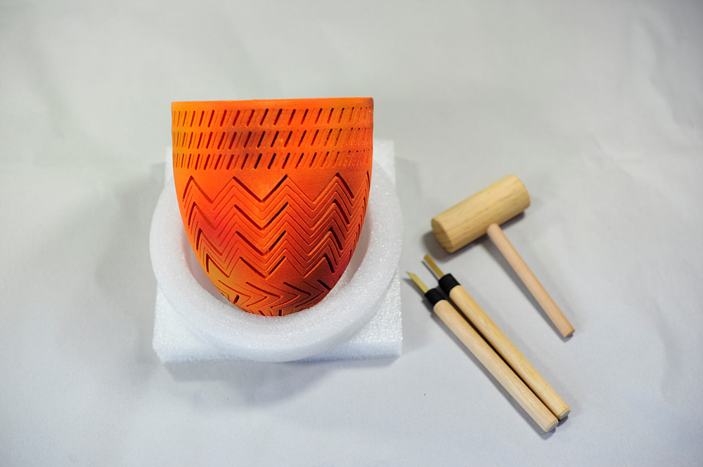 빗살무늬토기 조각등 만들기 체험은 신석기시대 토기를 점토소묘가 아닌 조각으로 토기문양을 표현하여 현대화된 무드 조각등으로 재해석하고 유물에 대한 이해도와 친근함을 높이기 위해 개발된 교구입니다.