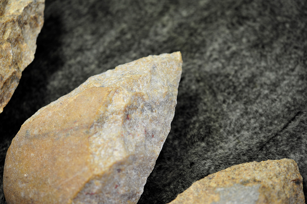 규암제 자갈돌을 가공하여 구석기시대 주먹도끼 제작