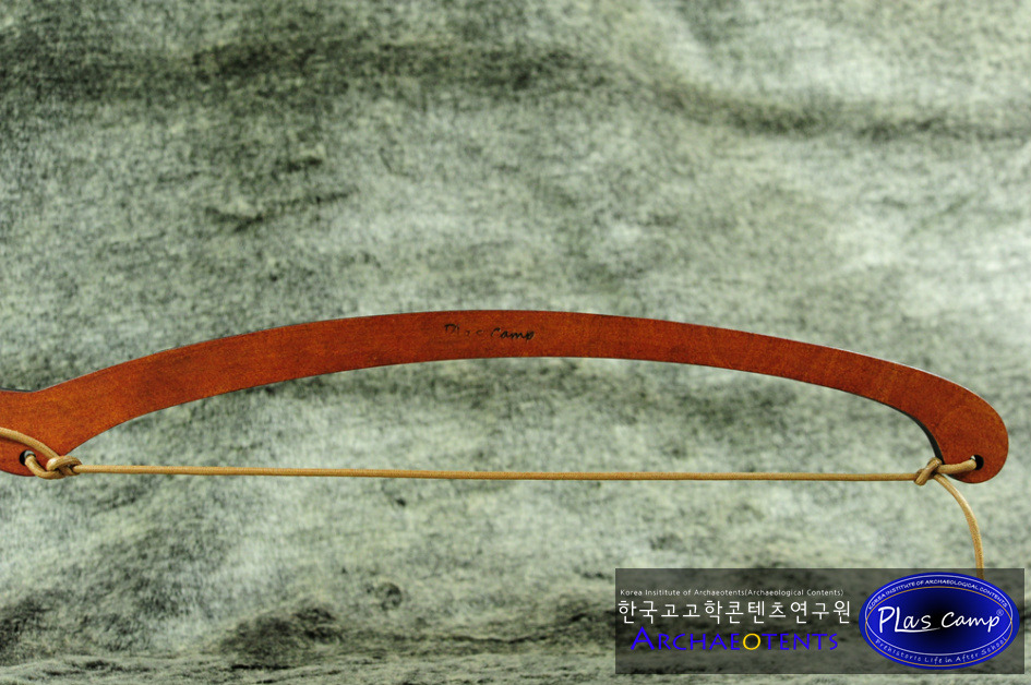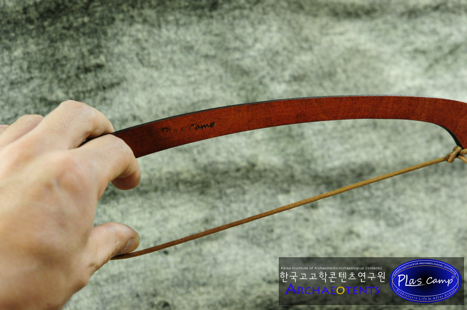 3.발화목(발화막대)을 활에 감는다.(발화목을 감은 활줄은 팽팽해야 합니다. 발화목을 한바퀴 감아 고정시킨 활줄이 느슨하면 발화목의 회전력이 떨어집니다.)