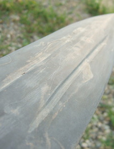 청동기시대 마제석검 제작-1 2008년 6월 청동기시대 마제석검 실험복원 약65cm 길이의 혼펠스를 가공하여 청동기시대 전기의 석검형태인 유절병식 마제석검 복원 완료(길이 51cm). 우역곡절 끝에 제작완료, 피홈조성과 석검날의 대칭능선조정이 가장 어려우며, 날을 세워서 바라보았을때 검신의 끝부분과 인부날, 견부.. 2008. 6. 17.